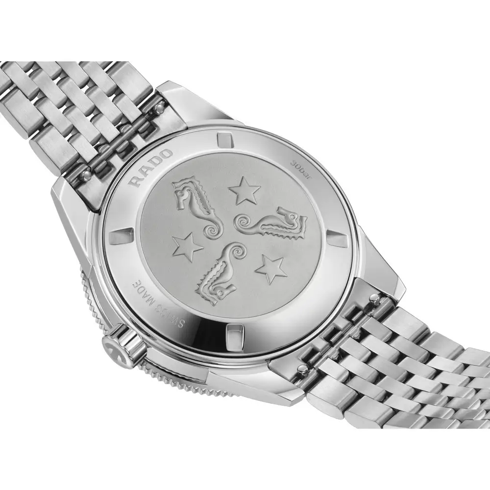 搭载自动机芯 Rado R763,动力储存高达 80小时,并经过多方位调校。配备 Nivachron™ 防磁技术,运行稳定。坚固的旋入式底盖结构提升耐用性。适合追求运动与可靠性的男士。