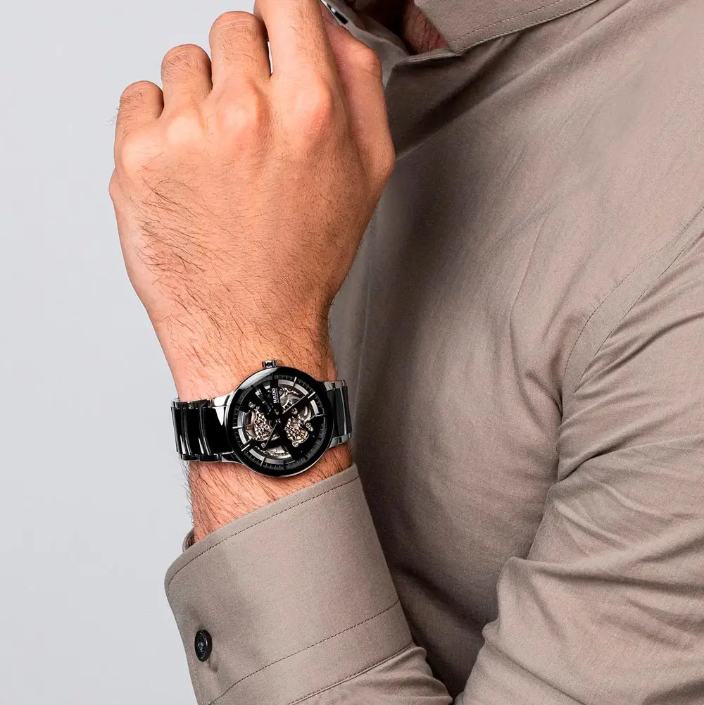 不锈钢与高科技陶瓷表链 融合金属光泽与现代创新,佩戴舒适自然。Rado Centrix Automatic Open Heart R30178152 代表着 传统与现代优雅的完美平衡,是追求高雅与工艺的理想之选。