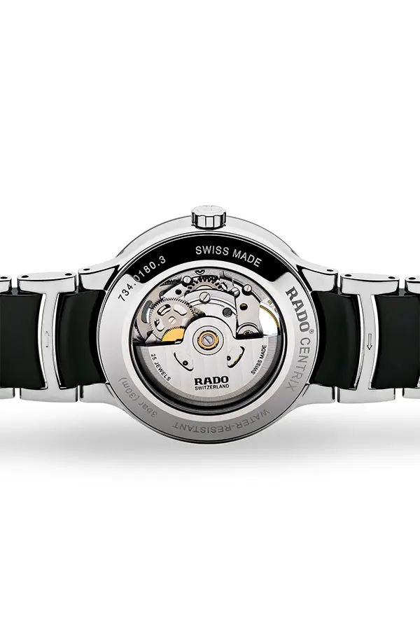 腕表搭载 Rado R734 自动机芯,拥有 长达 80 小时的动力储存,并配备 Nivachron™ 防磁游丝,提升精准度与稳定性。透明底盖 展现精致的自动陀与瑞士制表的细腻工艺。