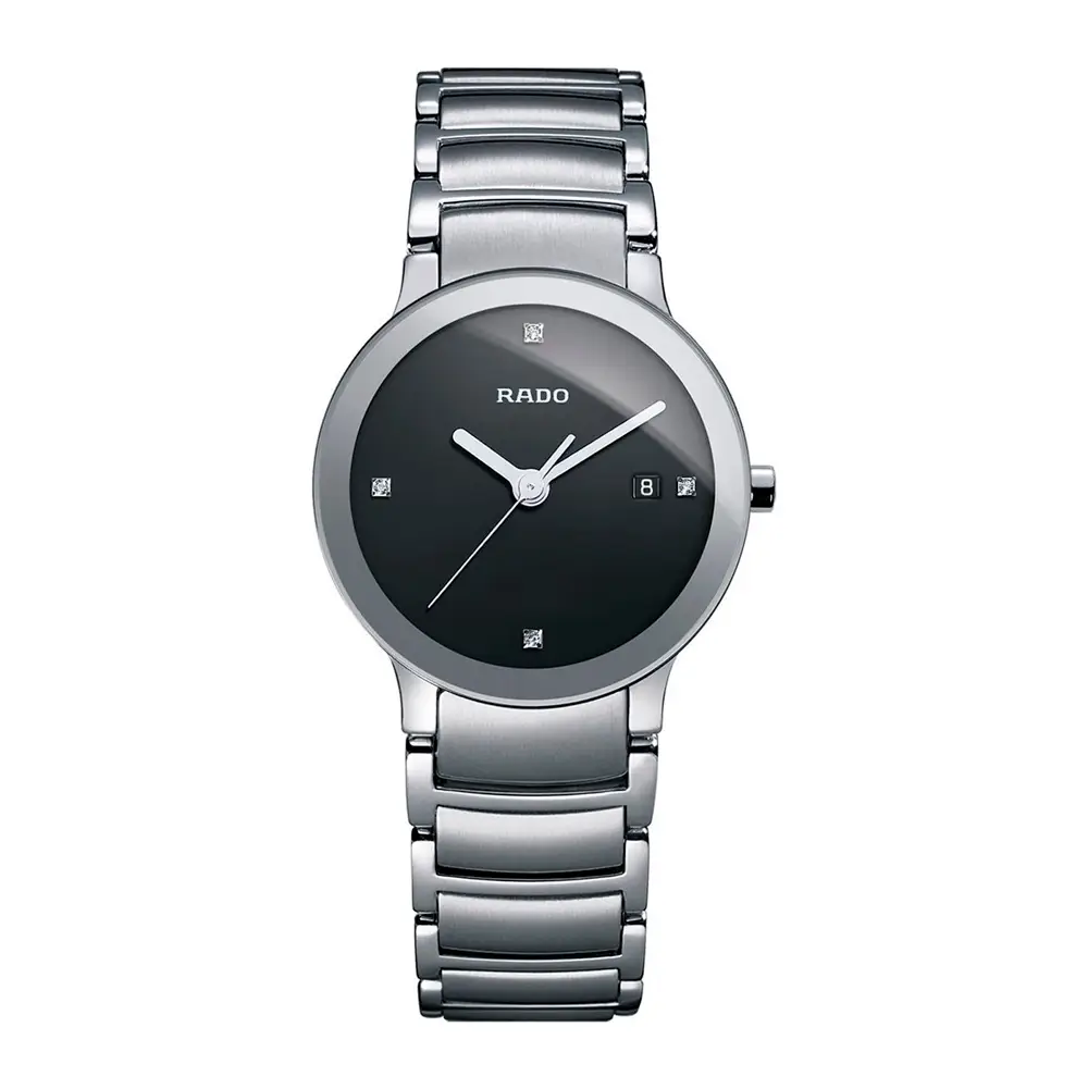 Rado Centrix Diamonds R30928713 是一款优雅的女士腕表,结合了永恒的风格与精致的奢华。其 28 毫米的不锈钢圆形表壳 低调而精致,适合日常佩戴或正式场合。蓝宝石玻璃 具有极高的 防刮性能,提供清晰视野,让您尽情欣赏 黑色表盘与精致钻石时标。