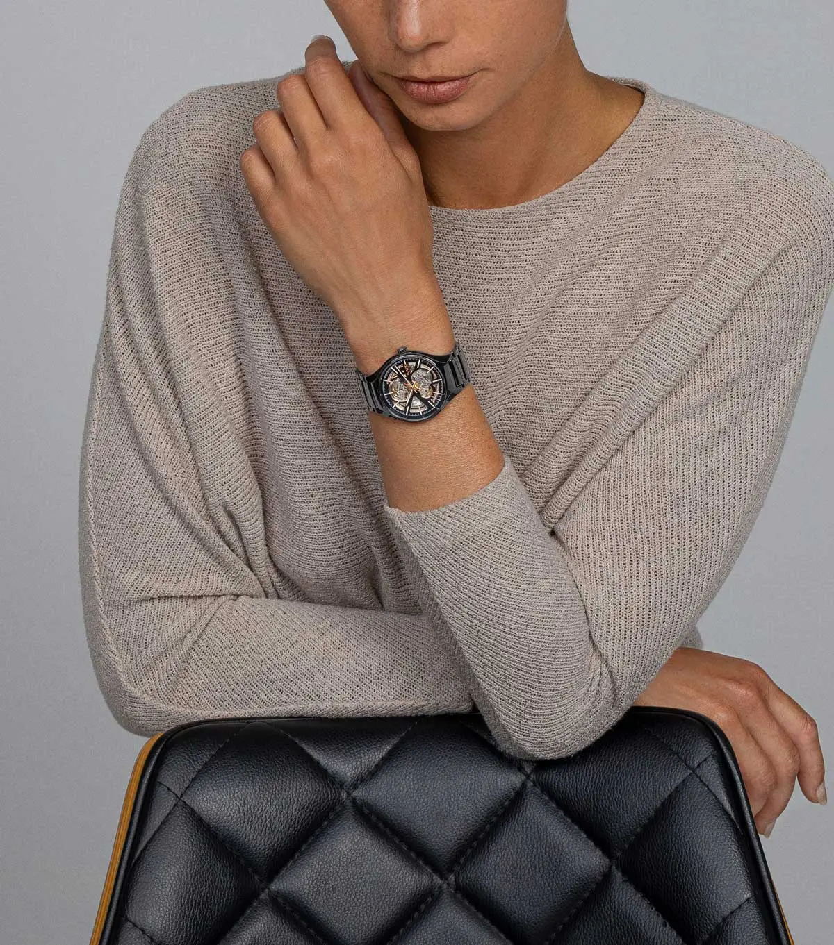 该系列表款几乎全部采用轻质、低过敏性和极其耐用的高科技陶瓷制成,确保了非凡的佩戴舒适性和使用寿命。有配备自动或石英机芯的表款,通常具有镂空表盘、镂空或镶钻细节等特色。