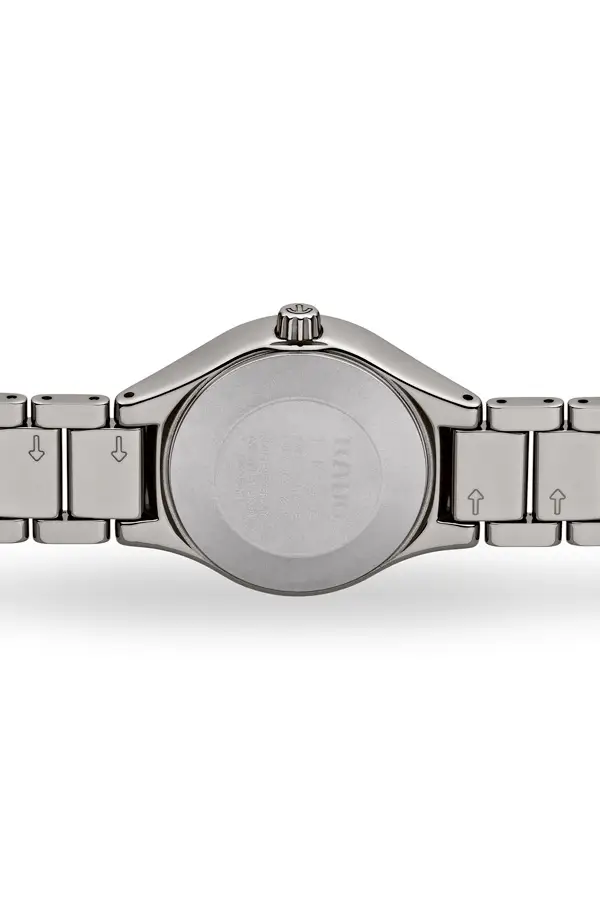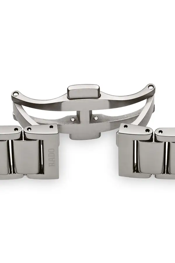 等离子陶瓷与钛金属表链 与表壳一体成型,佩戴舒适贴合。折叠式表扣 兼具安全与便利。Rado True Automatic Diamonds R27243712 代表 永恒美学、精湛工艺与含蓄奢华,是腕间真正的艺术珍品。