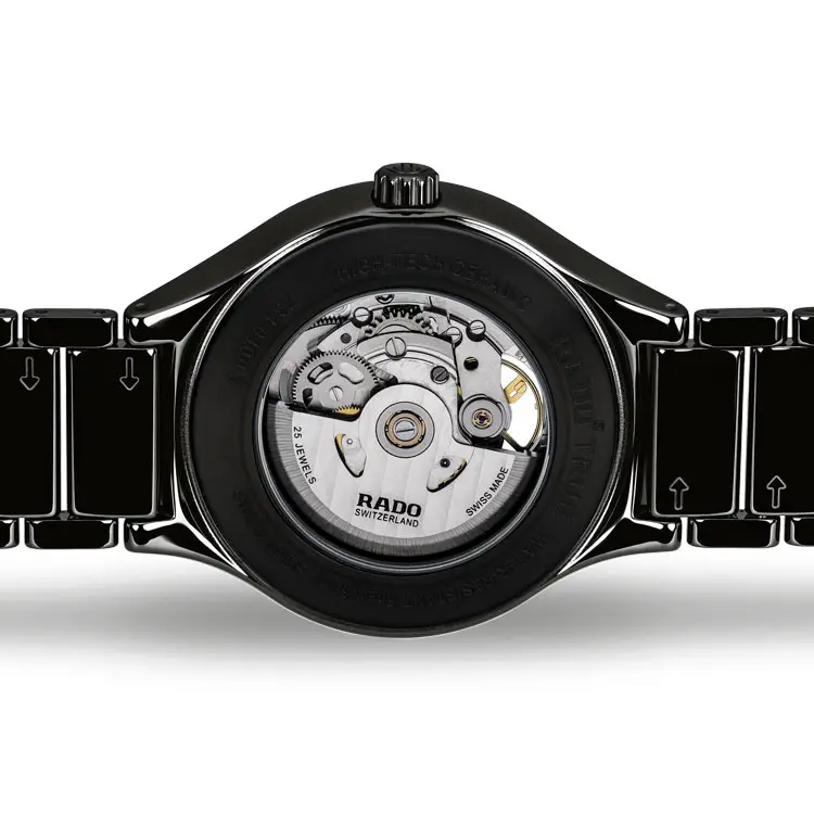 一体化陶瓷钛金属表链 与表壳自然衔接,佩戴舒适流畅。透明底盖 呈现自动陀的运转之美。Rado True Round Secret R27107152 代表了 瑞士创新、技术卓越与永恒优雅 的完美平衡,是追求精致现代风格的理想之选。