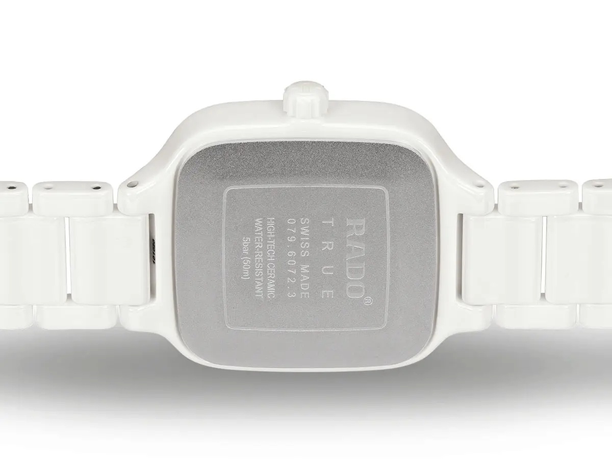 一体式白色陶瓷表链 与表壳无缝衔接,佩戴轻盈舒适。Rado True Square Diamonds R27072902 是 创新工艺与现代奢华 的完美结合,专为追求优雅与完美的女性打造。