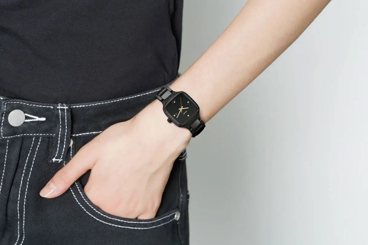 黑色陶瓷表带搭配 折叠式表扣,佩戴舒适稳固,与表壳完美协调。具备 5 ATM(50 米)防水性能,可应对日常生活中的雨水与洗手场景。