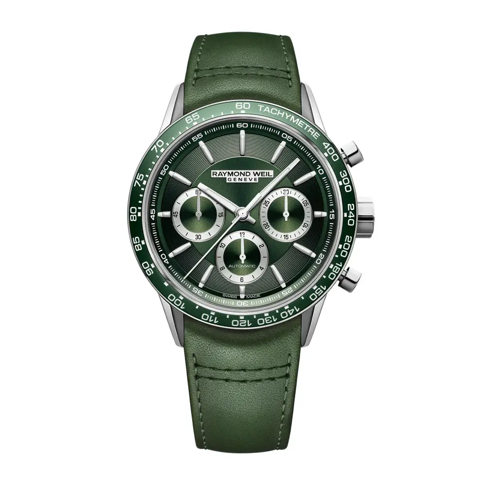 Raymond Weil Freelancer 7741-SC7-52021 是一款 精致的男士计时腕表,完美融合了 优雅气质、精密工艺与运动风格。作为 Freelancer 系列的一员,它以 醒目的绿色设计 与 瑞士制表精度 脱颖而出,展现现代绅士的自信风采。