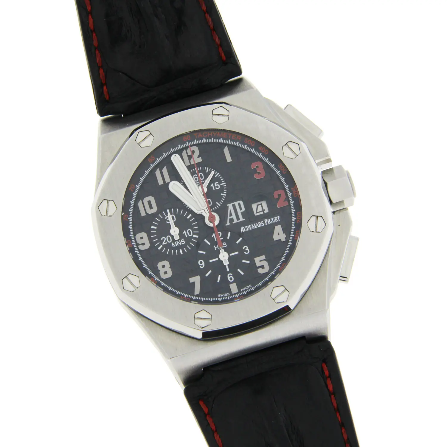 Royal Oak Offshore皇家橡树离岸型系列大胆地重新诠释了爱彼于1993年推出的原版Royal Oak皇家橡树系列,将极限运动的美学与粗犷的个性表现得淋漓尽致。1972年问世的皇家橡树系列定义了奢华运动腕表,而离岸型系列则更进一步--向着巨大的比例、技术耐用性和视觉冲击力的方向发展。