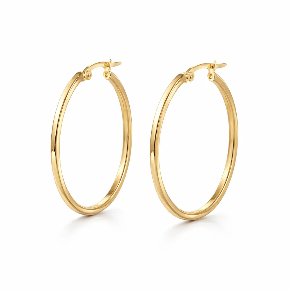 这款黄金圆环耳环以简洁的光面设计呈现,展现出永恒的优雅与极简风格。精细抛光的表面能够优雅地反射光线,凸显黄金自然温暖的色泽,使耳环显得精致且百搭。