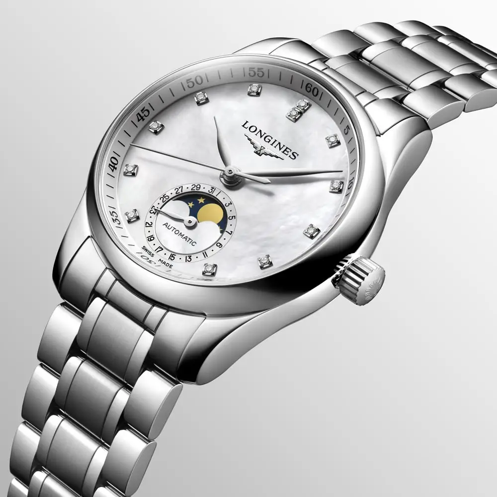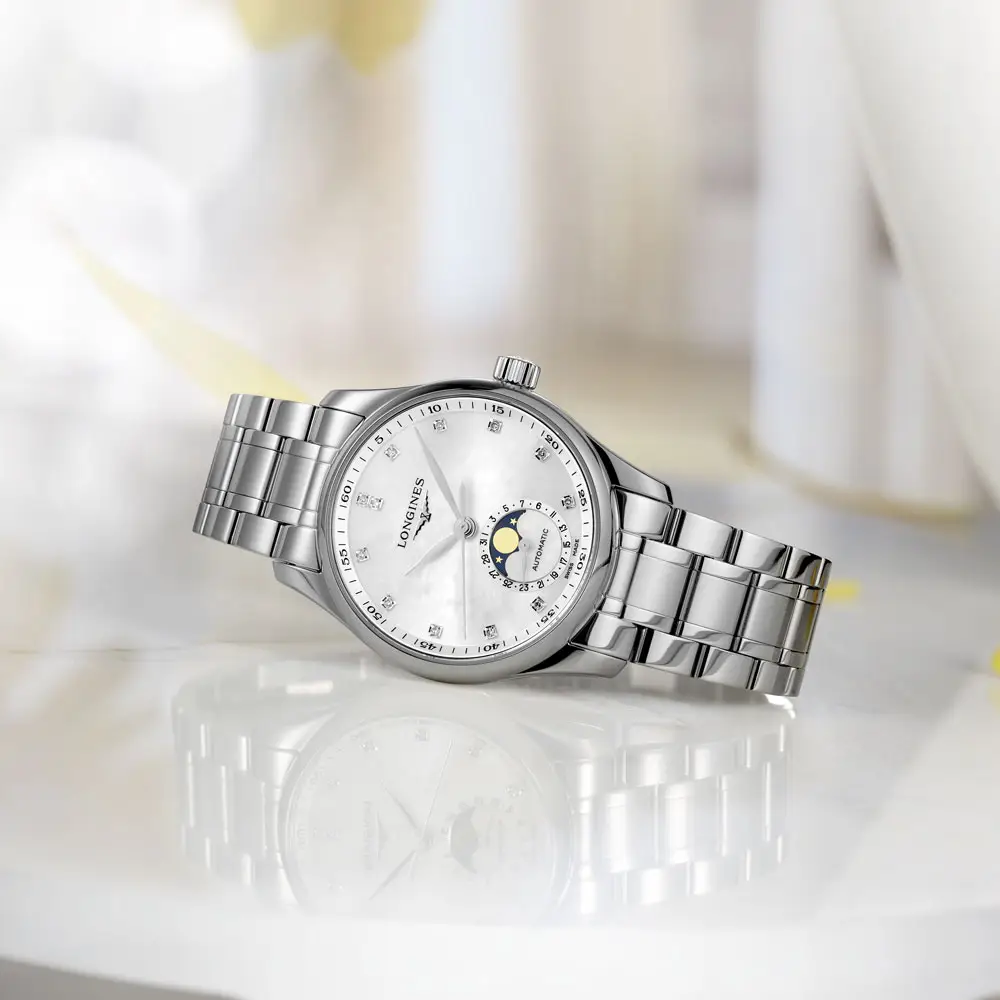 腕表搭载自动机芯 L899,动力储存达 72 小时,确保精准可靠。具备 30 米 (3 ATM) 防水性能,配备精钢表链与三重安全折叠扣,完美诠释女士 浪琴 Master 系列 的优雅与工艺。