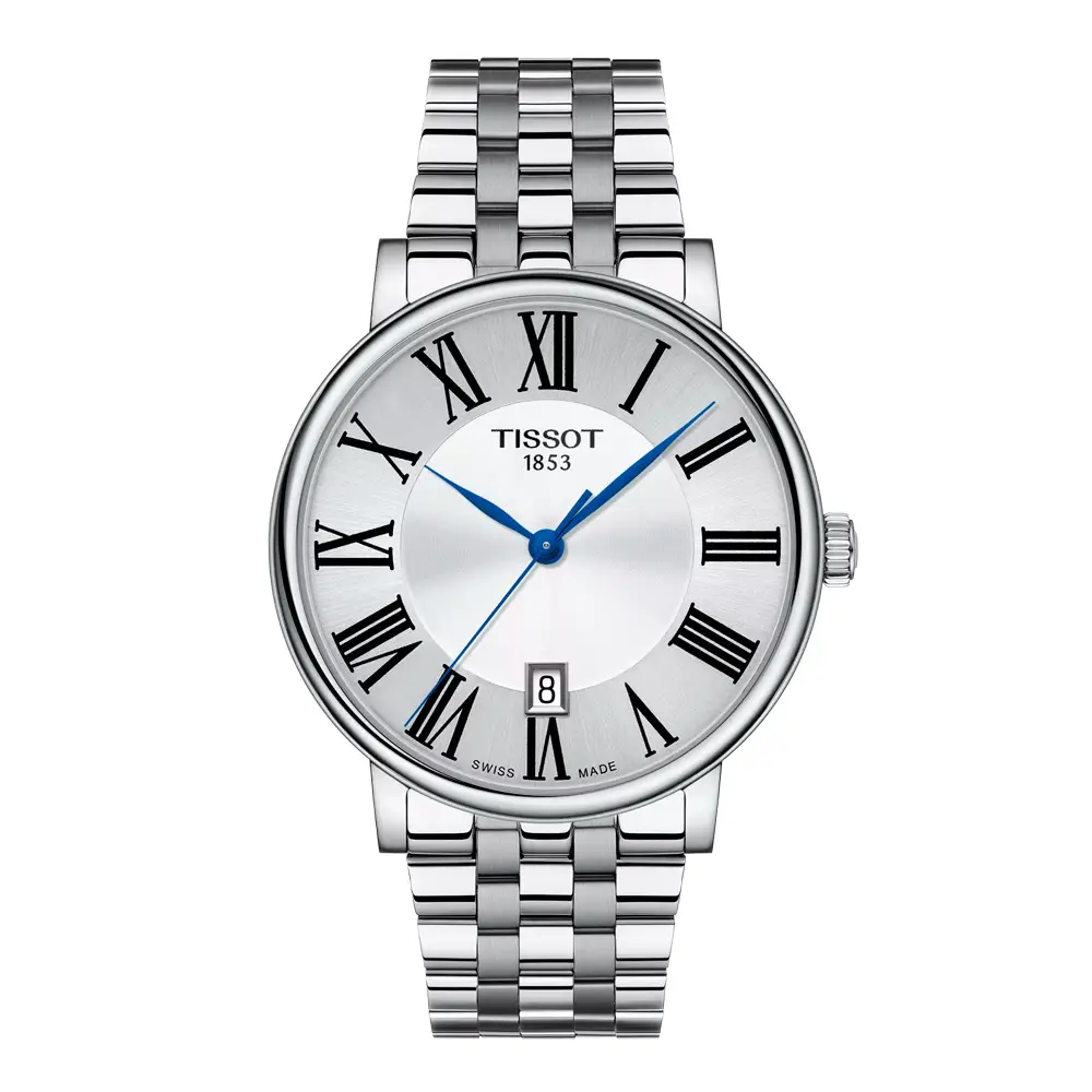 天梭 Tissot Carson Premium T122.410.11.033.00 将 经典优雅、永恒风格与瑞士精准工艺 完美融合。40 毫米不锈钢表壳 搭配 银色表盘,饰以细腻纹理,抛光时标与指针 展现出精致典雅的气质。防刮蓝宝石水晶镜面 确保持久清晰与耐用。