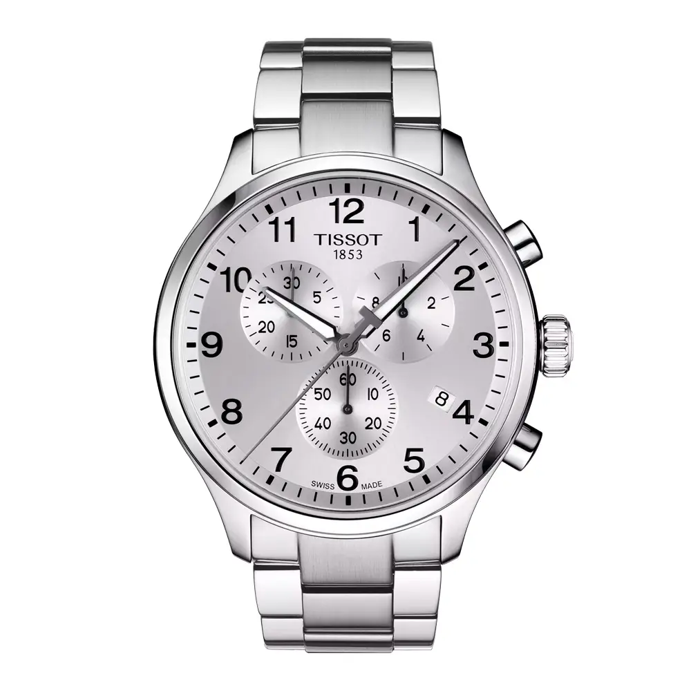 天梭 Tissot Chrono XL Classic T116.617.11.037.00 融合了 运动优雅、现代设计与瑞士精准。45 毫米不锈钢表壳 搭配 银色表盘,配有 三眼计时盘、抛光指针与刻度,呈现大胆而和谐的风格。