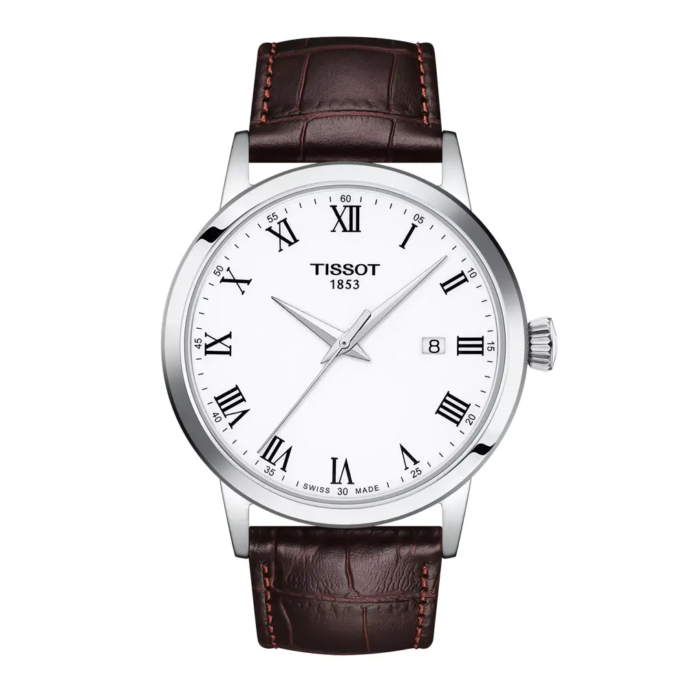 Tissot Classic Dream 以 简洁的线条与永恒的优雅 为核心设计理念。其 42 毫米 316L 不锈钢表壳 搭配柔和的 白银色表盘,配以罗马数字与纤细指针,展现出精致而正式的气质,非常适合商务场合、特别活动或日常优雅佩戴。棕色皮革表带 与传统表扣为腕表增添经典韵味。
