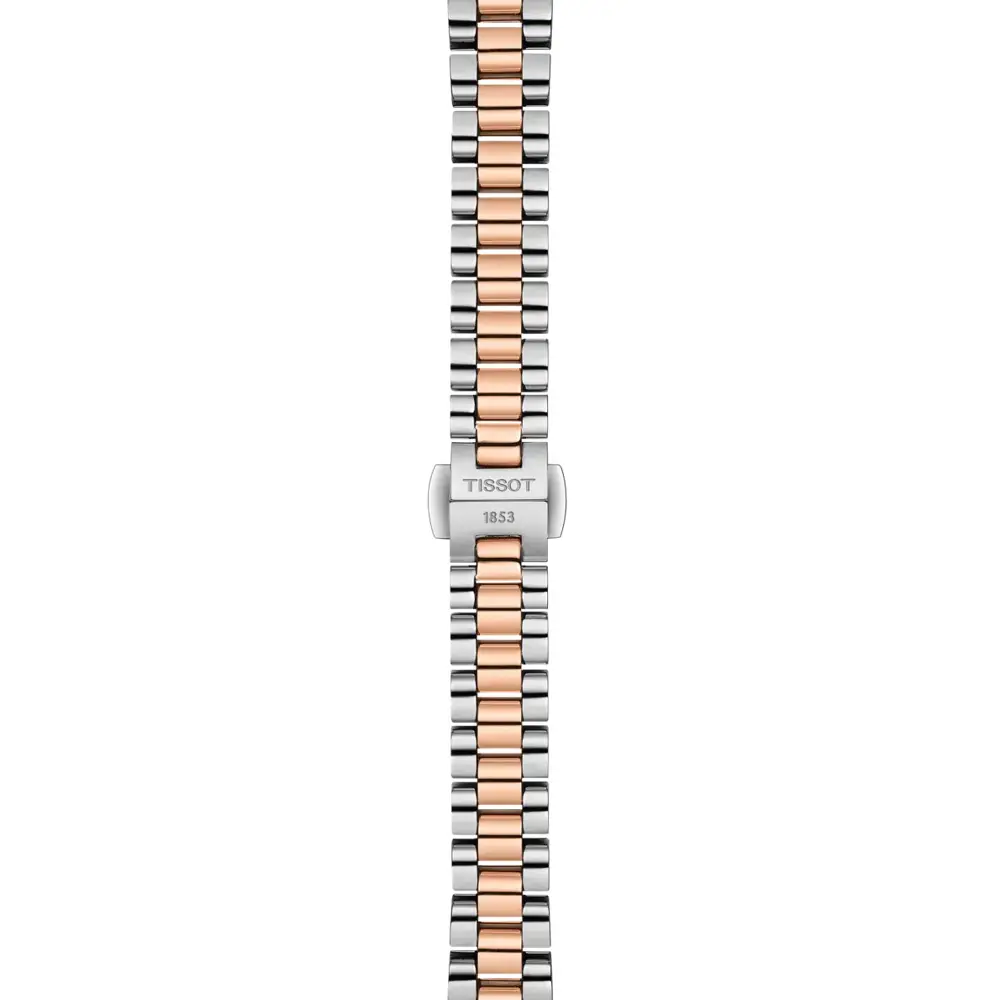 优雅的 双色精钢表链 配以玫瑰金装饰和 带按钮的蝴蝶扣,兼顾舒适与安全。Tissot Desir 是欣赏瑞士品质、精美设计与永恒风格的女性理想之选。