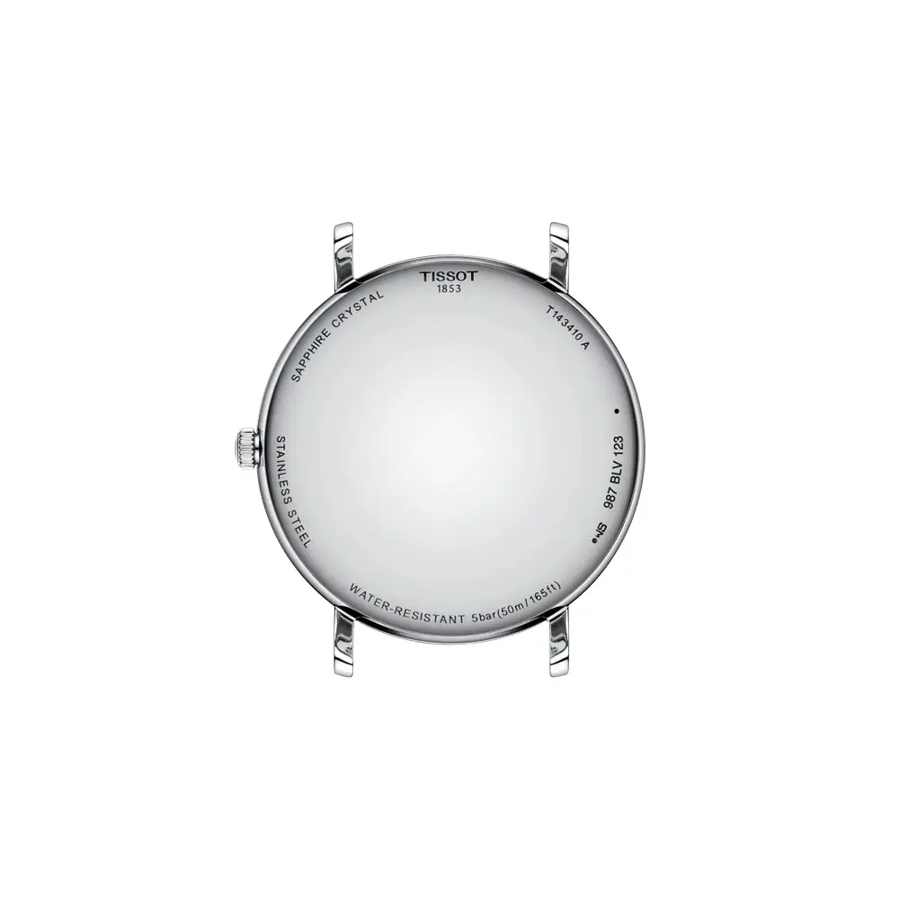 Tissot Everytime 系列以简约与优雅为设计核心,配备纯白表盘、细致刻度与纤细指针。T143.410.11.011.00 在日常与正式场合之间切换自如,展现瑞士制表的精准与现代美感。
