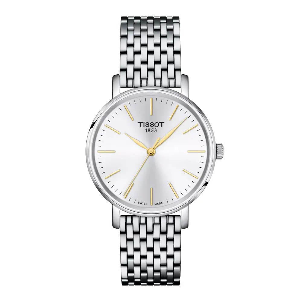 女士腕表 Tissot Everytime Lady T143.210.11.011.01 以简洁的极简设计展现隽永优雅。直径 34 毫米的不锈钢圆形表壳精致而均衡,既适合日常佩戴,也适合正式场合。纤薄的外形使其成为现代女性的百搭配饰。