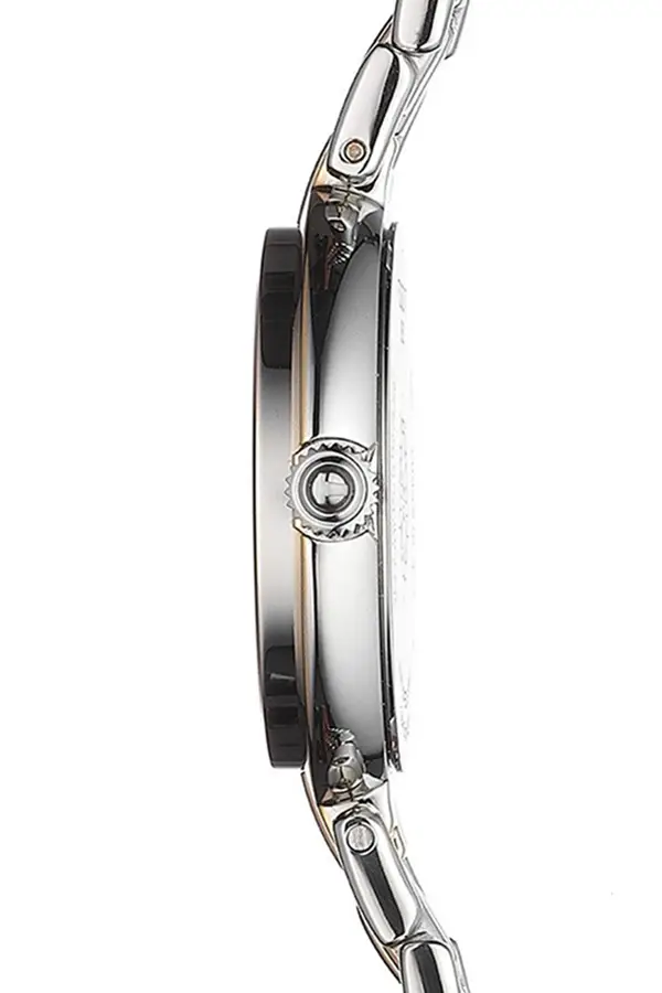 一款经典的手表,加上与众不同的色彩处理,将成为每位女士手腕上的装饰品。银钢与镀玫瑰金的结合是近年来的流行趋势。金色的模拟表盘镶嵌在珍珠贝母底座上。巧妙融入的表冠,即使是高级材质的衣服也不会受到威胁。表盘由最耐用的蓝宝石水晶保护。