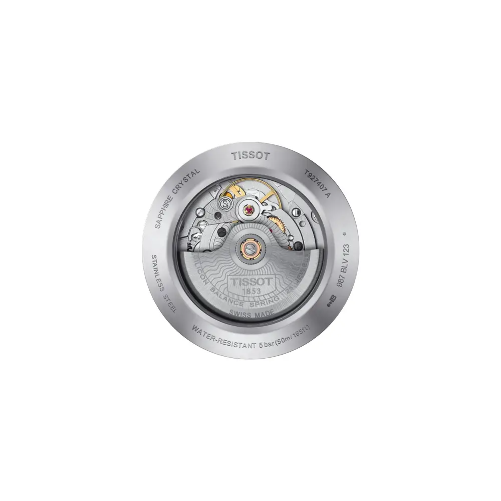 腕表搭载高端的 Powermatic 80 Silicium 自动机芯,拥有令人印象深刻的 80 小时动力储备。硅质游丝 提升了机芯的抗磁性能与长期精准度。防刮擦蓝宝石玻璃 覆盖表盘,而透明底盖展示内部机械结构之美。整表具备 5 巴(50 米)防水性能。
