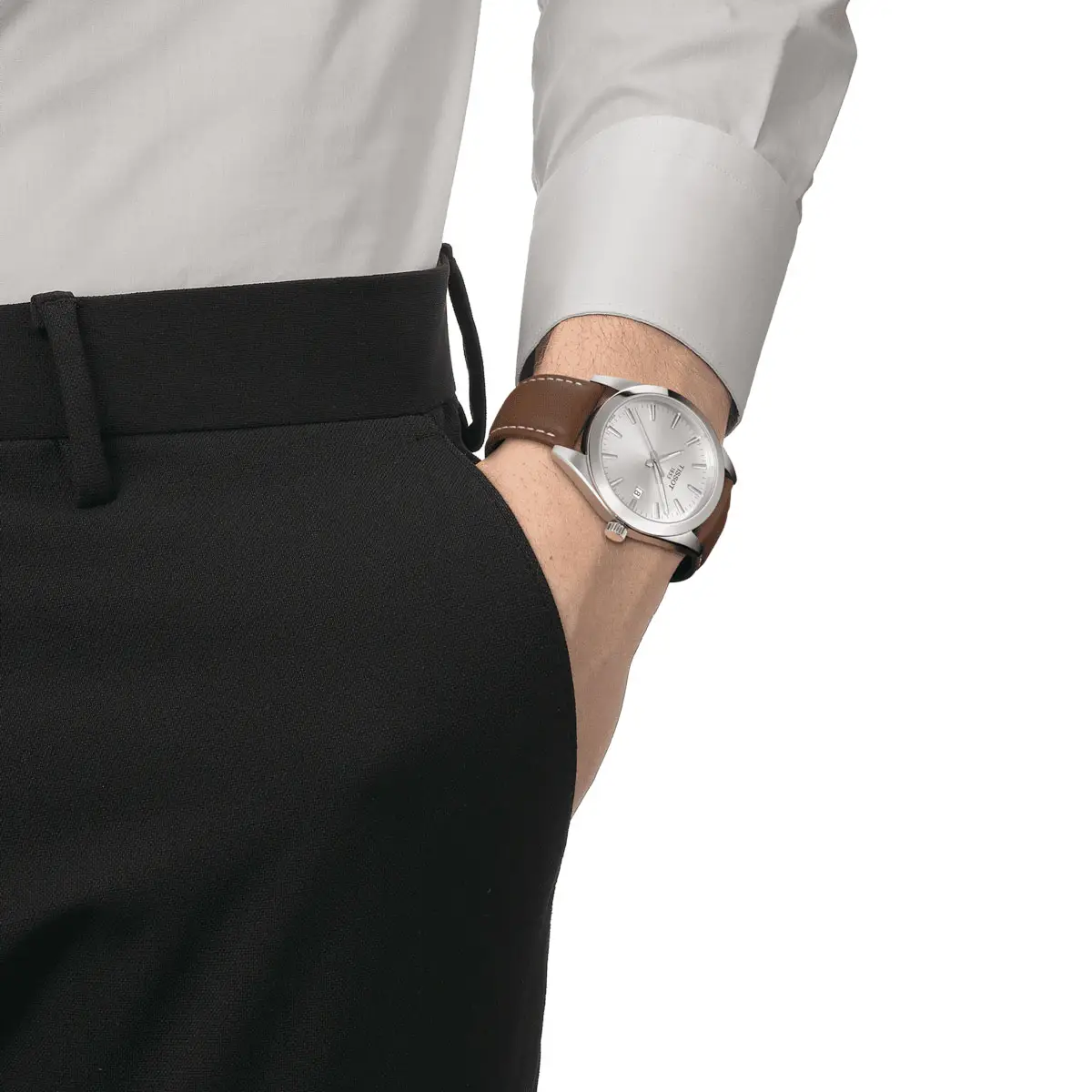 天梭 T-Classic 系列彰显了瑞士制表业的经典价值--优雅、简约和卓越技术。该系列腕表设计简洁,比例和谐,风格多变,适合各种场合佩戴--从正式场合到日常佩戴。