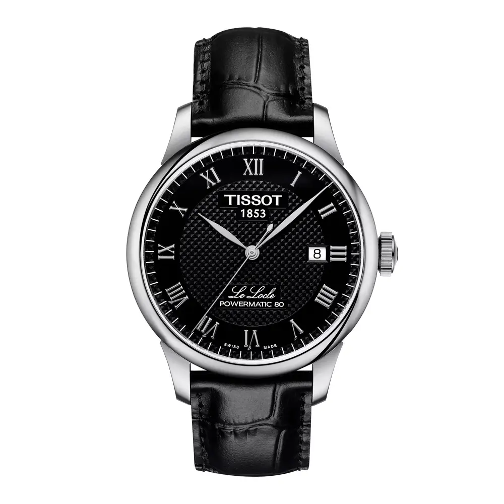 天梭 Tissot Le Locle Powermatic 80 T006.407.16.053.00 结合了 经典优雅、瑞士传统与现代精准工艺。此款腕表以天梭品牌发源地 Le Locle 勒洛克 命名,配备 39.3 毫米不锈钢表壳 和 黑色雕纹(Guilloché)表盘,罗马数字时标与柳叶形指针 展现出永恒的高雅气质。
