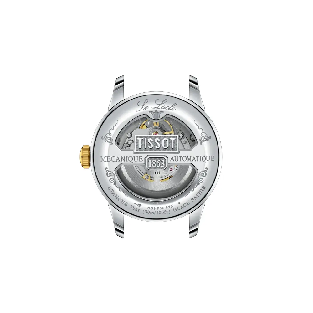 Tissot Le Locle Powermatic 80 T006.407.22.033.01 将经典制表传统与现代技术完美融合。其 316L 精钢表壳搭配黄色 PVD 镀层,配合 39.3 毫米表径,呈现优雅而均衡的腕上风格。银色表盘搭配 罗马数字 与精致细节,使整表散发正式且精致的气质。