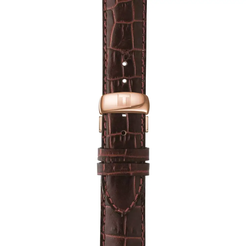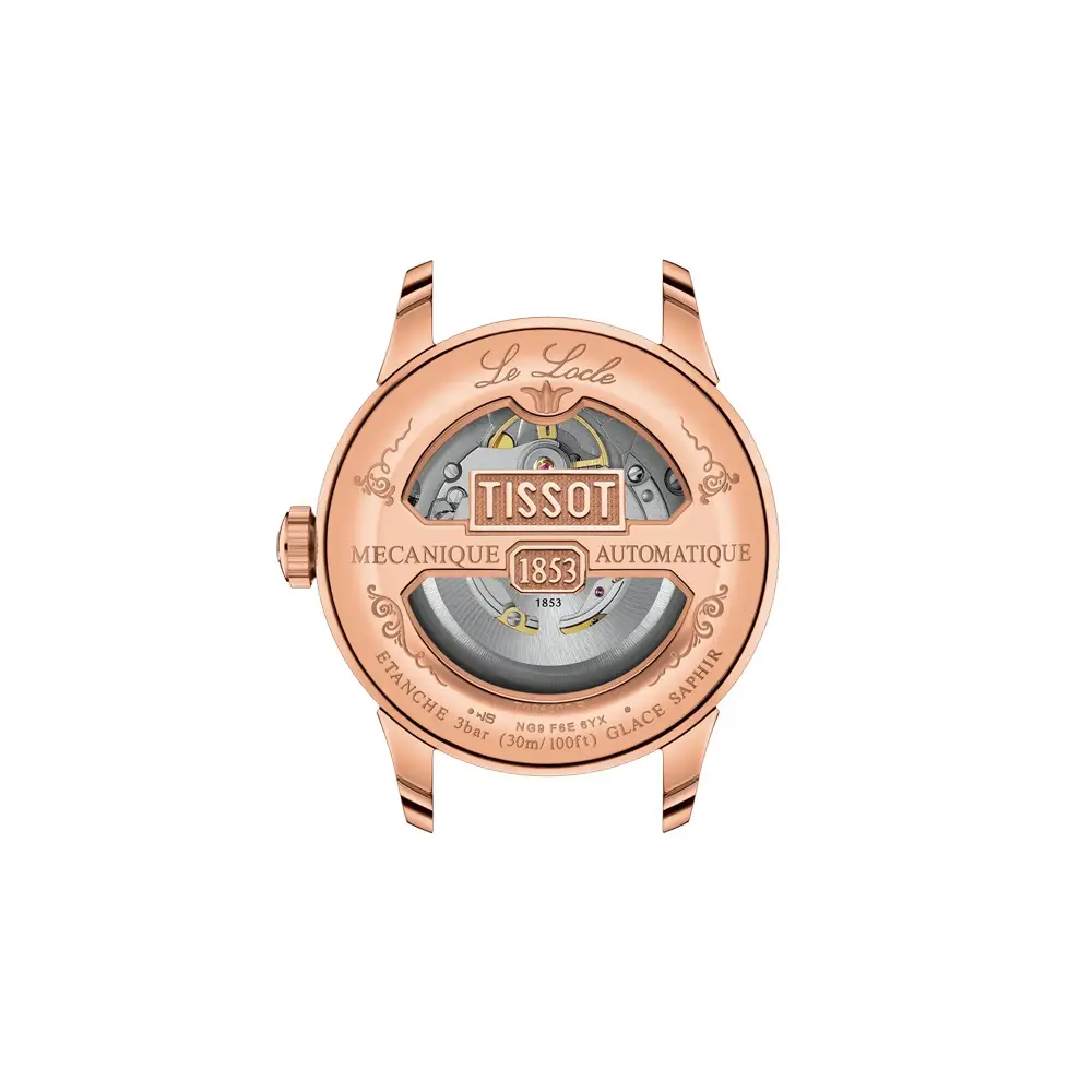 Tissot Le Locle Powermatic 80 T006.407.36.033.00 体现了经典美学与瑞士制表精度的完美结合。其 316L 精钢表壳搭配玫瑰金 PVD 涂层,并采用 39.3 毫米表径,在手腕上呈现稳重而优雅的气质。银色表盘配有 罗马数字、精致机刻纹理及日期显示,进一步强化了正式与恒久的设计风格。