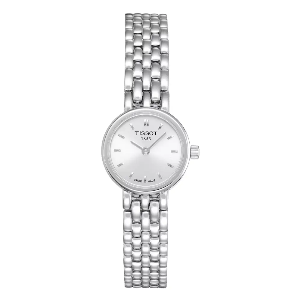 Tissot T058.009.11.031.00 来自 T-Lady 系列,以其 19.5 毫米的小巧表径 展现出格外精致优雅的气质。316L 精钢表壳 搭配银色表盘,整体呈现出经典且高雅的风格,更像一件精美首饰,而非传统腕表。纤薄的精钢表链强化了简约气质,适合日常佩戴与正式场合。