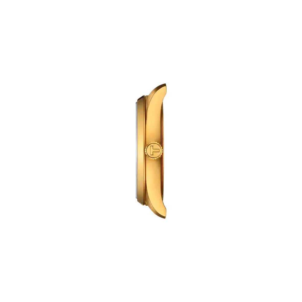Tissot PR 100 34mm T150.210.33.021.00 是一款兼具优雅与耐用的女士腕表,融合了瑞士精密工艺与永恒设计。其 34 毫米圆形表壳 采用 精钢搭配黄色 PVD 镀金 材质,呈现奢华质感并确保持久耐用。表盘由 蓝宝石水晶镜面 保护,具有极高的抗刮性能。