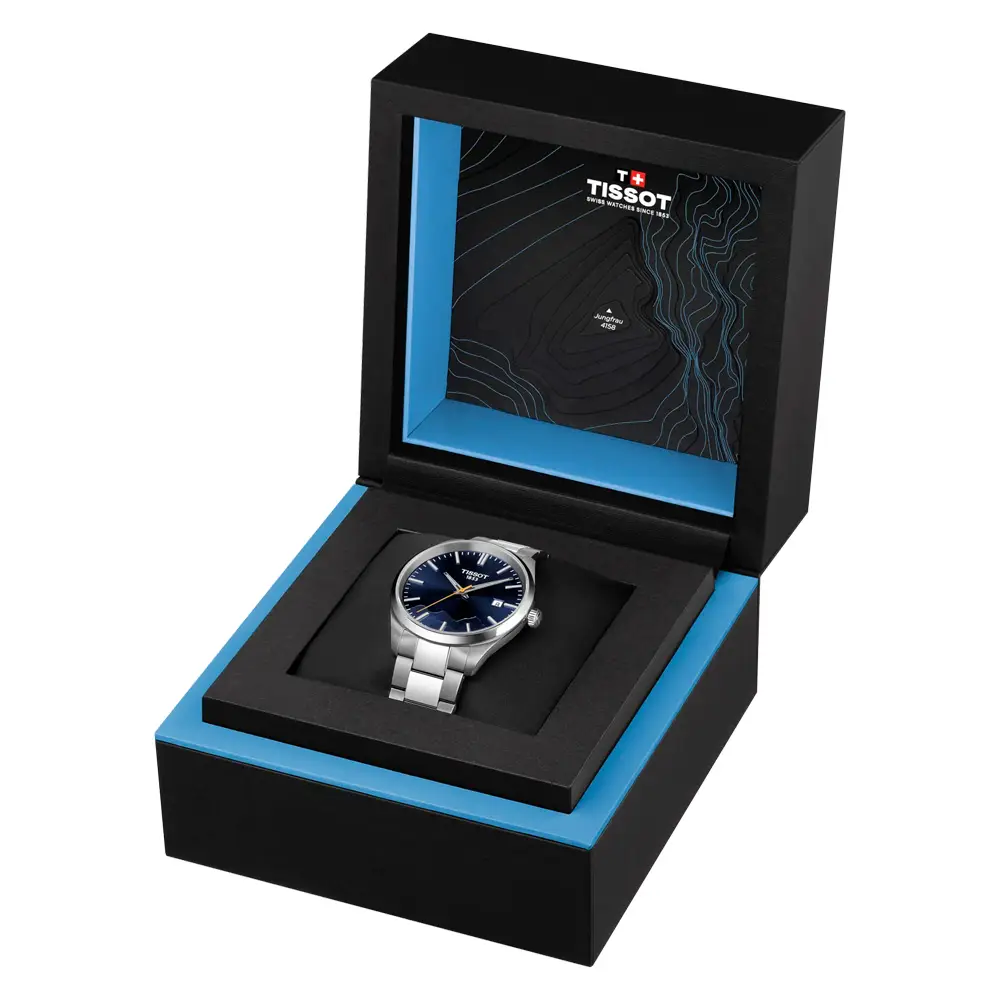 这款 天梭 PR 100 Jungfraubahn T150.410.11.041.02 为致敬 瑞士标志性少女峰铁路 而设计,象征着勇气、创新与人与自然的和谐共存。40毫米不锈钢表壳 搭配 深蓝色表盘,灵感源自瑞士阿尔卑斯山的壮丽景色,优雅且精致。