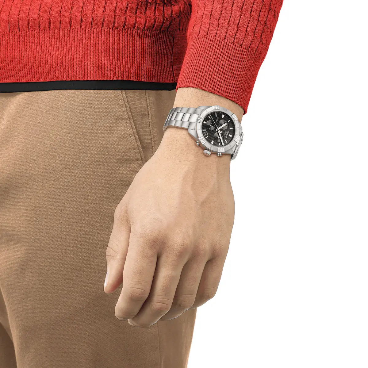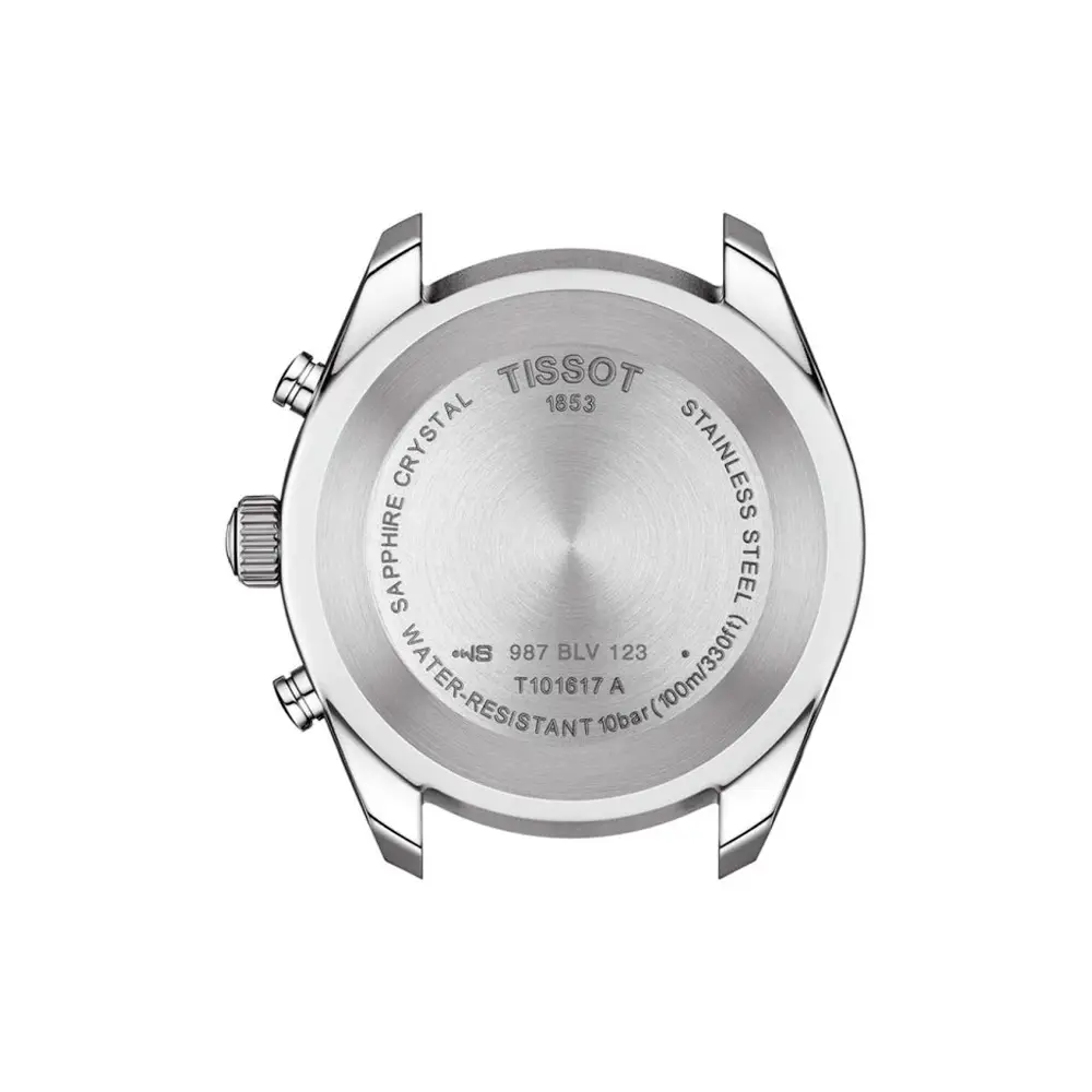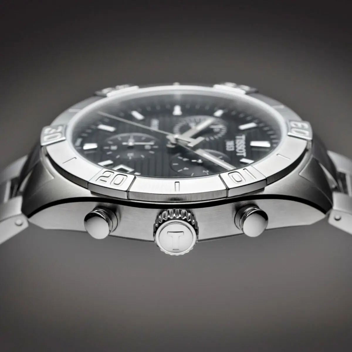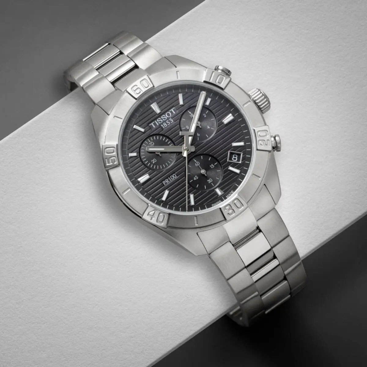 不锈钢表链配折叠扣 兼顾优雅与坚固。天梭 PR 100 Sport Gent Chronograph T101.617.11.051.00 是追求 时尚、实用与可靠性能 男士的理想之选,完美结合 瑞士品质与现代运动风格。