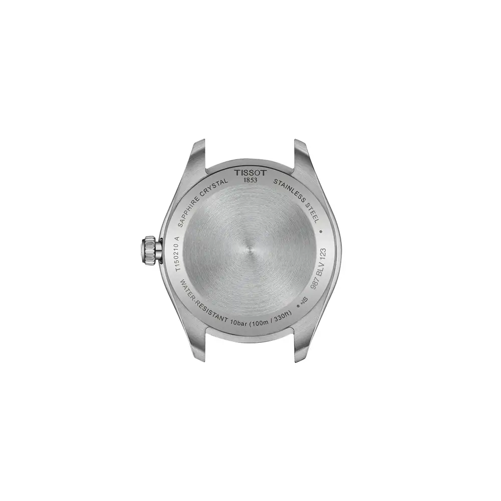 内部采用 瑞士 ETA F05.115 石英机芯,以其 精准稳定 的表现而著称。腕表配备 3 点位置日期窗 以及 EOL 电量不足提示功能,确保及时更换电池。Tissot PR 100 T150.210.11.331.00 完美融合 瑞士品质、女性优雅与日常实用性。