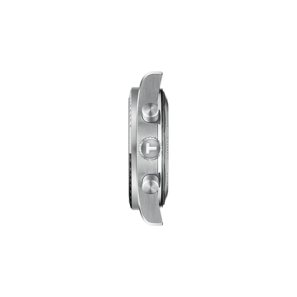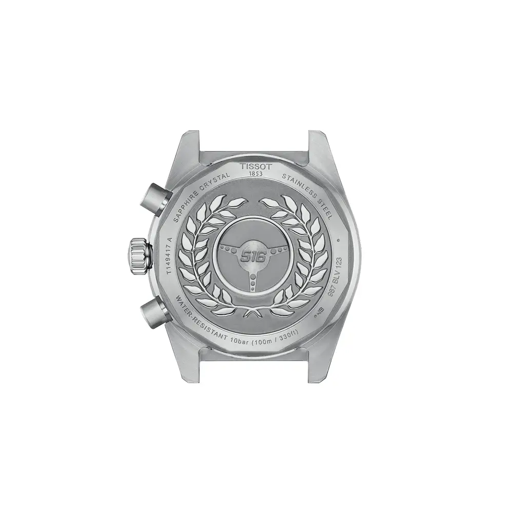 Tissot PR516 Chronograph T149.417.11.051.00 是一款充满动感的 男士运动计时腕表,融合赛车运动灵感与实用功能。黑色表盘搭配三枚计时小表盘、夜光指针与清晰刻度,在日常或运动环境中均具备良好可读性。