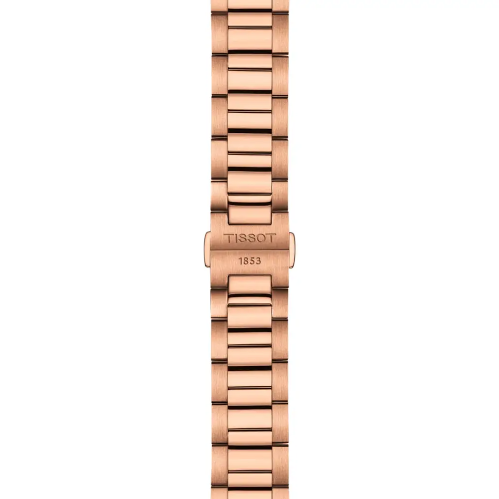 Tissot PR 100 Quartz 采用 40 mm 男士尺寸,将优雅设计与高耐用性巧妙结合。316L 不锈钢表壳搭配玫瑰金 PVD 涂层、蓝宝石玻璃以及 100 米(10 bar)防水性能,使其适合日常佩戴甚至略具运动性的使用场景。