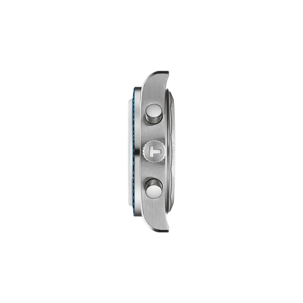 Tissot PR516 Automatic Chronograph 采用 41 mm 尺寸设计,将 1960 年代赛车腕表的美学融入现代、坚固且技术先进的结构之中。316L 不锈钢表壳、防反光蓝宝石玻璃、透明底盖以及 100 米(10 bar)防水性能,使腕表适合日常佩戴与轻度运动使用。整体设计忠实呈现 PR516 系列的赛车传统。