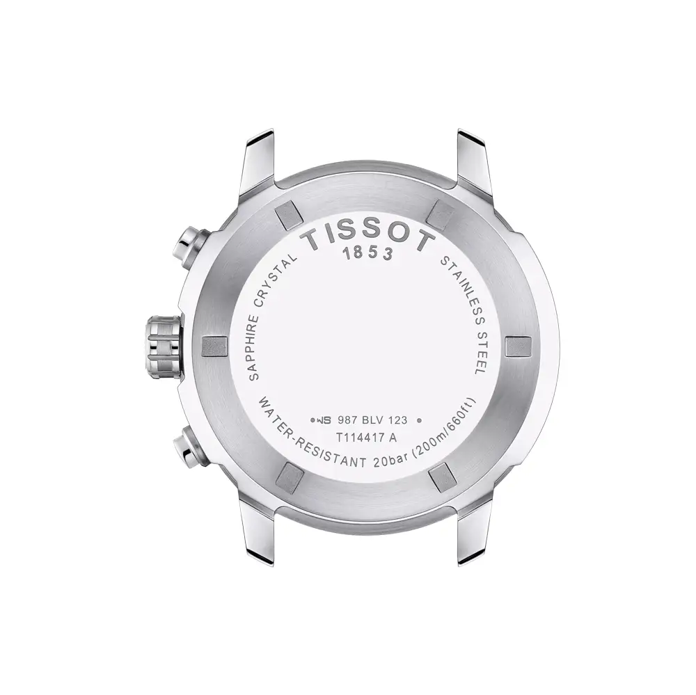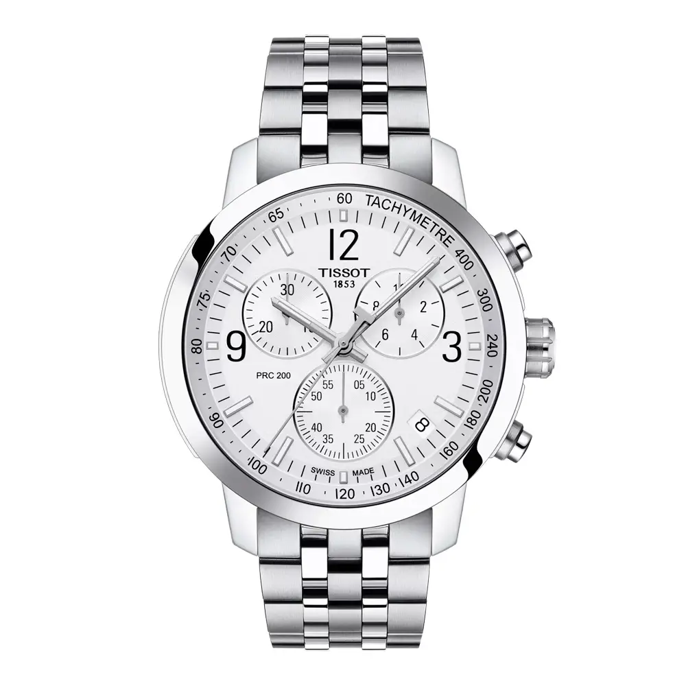 天梭 Tissot PRC 200 Chronograph T114.417.11.037.00 将 运动功能、精密工艺与永恒优雅 完美结合。坚固的 43 毫米不锈钢表壳 配备 防刮蓝宝石水晶镜面,保护 银色表盘,清晰的刻度与对比鲜明的指针确保极佳的可读性。平衡的比例适合正式场合与日常佩戴。