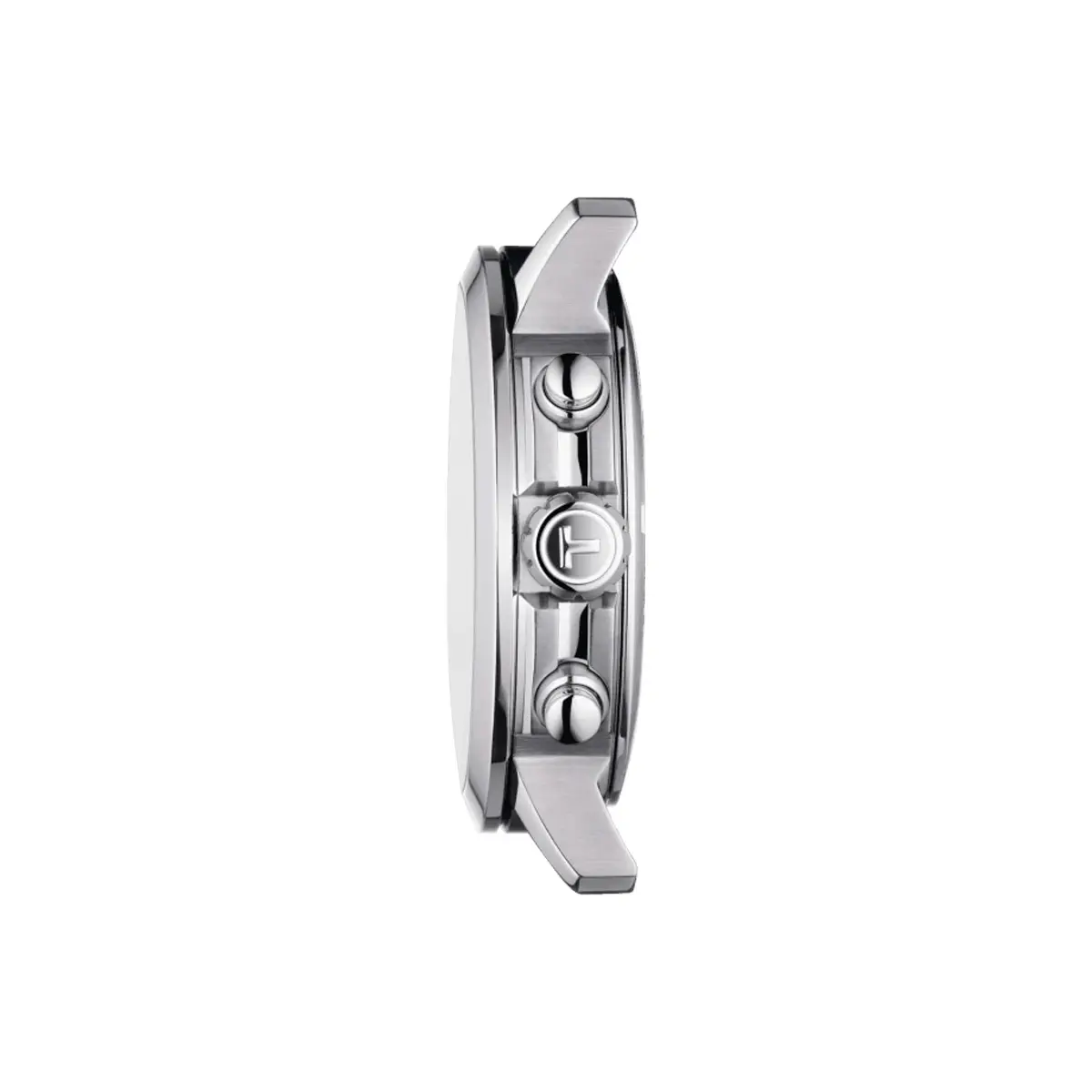 不锈钢表链配折叠扣 展现坚固且优雅的设计风格。天梭 PRC 200 Chronograph T114.417.11.047.00 是追求 动力、时尚与可靠性 男士的理想之选,完美结合 瑞士品质与现代运动风格。