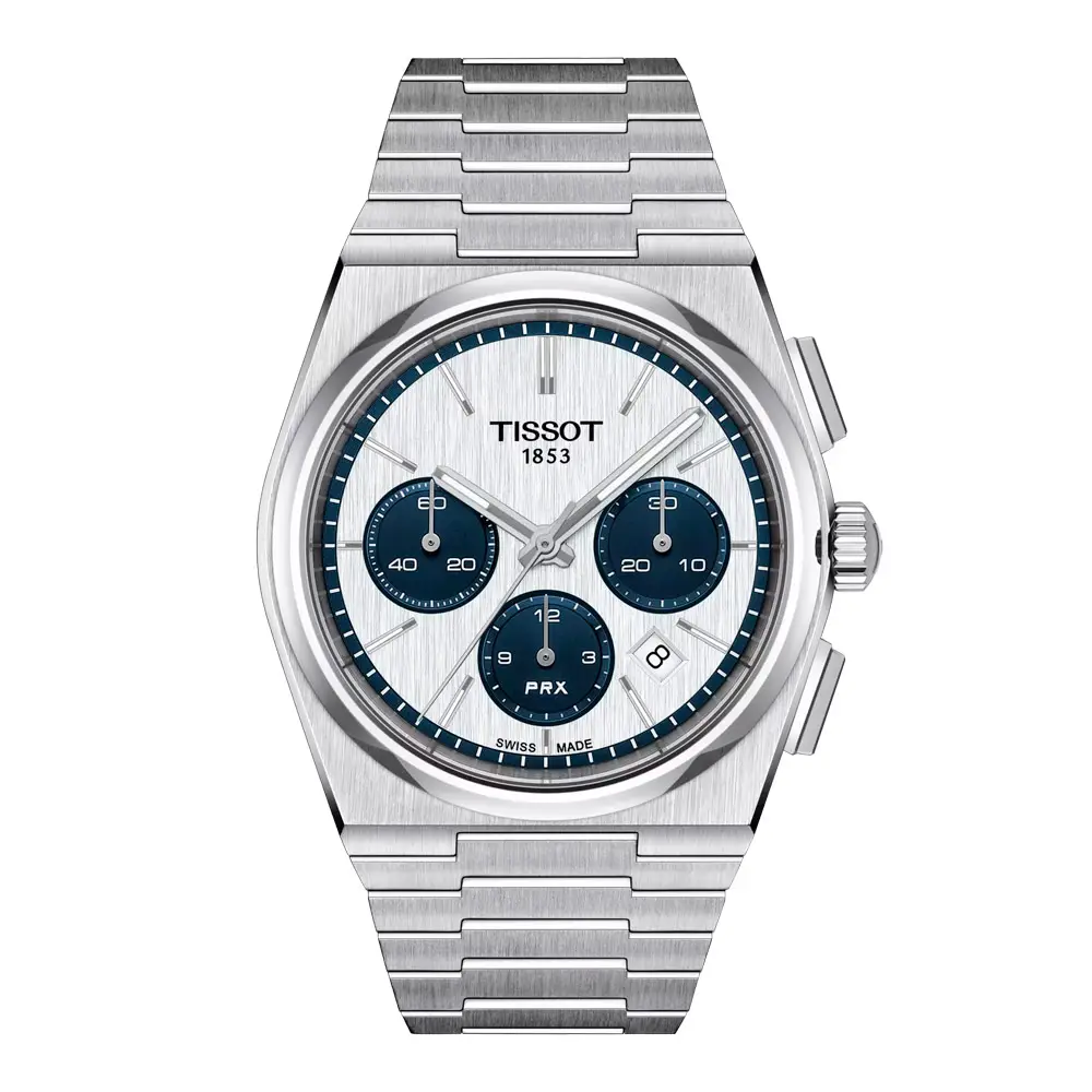 Tissot PRX Automatic Chronograph T137.427.11.011.01 将运动与优雅完美结合,体现精湛的瑞士制表工艺与永恒设计。42 毫米圆形不锈钢表壳 配备坚固的 蓝宝石水晶镜面,有效防刮。银色表盘搭配对比色小表盘,提供 计时功能 和 日期显示,实用性极佳。