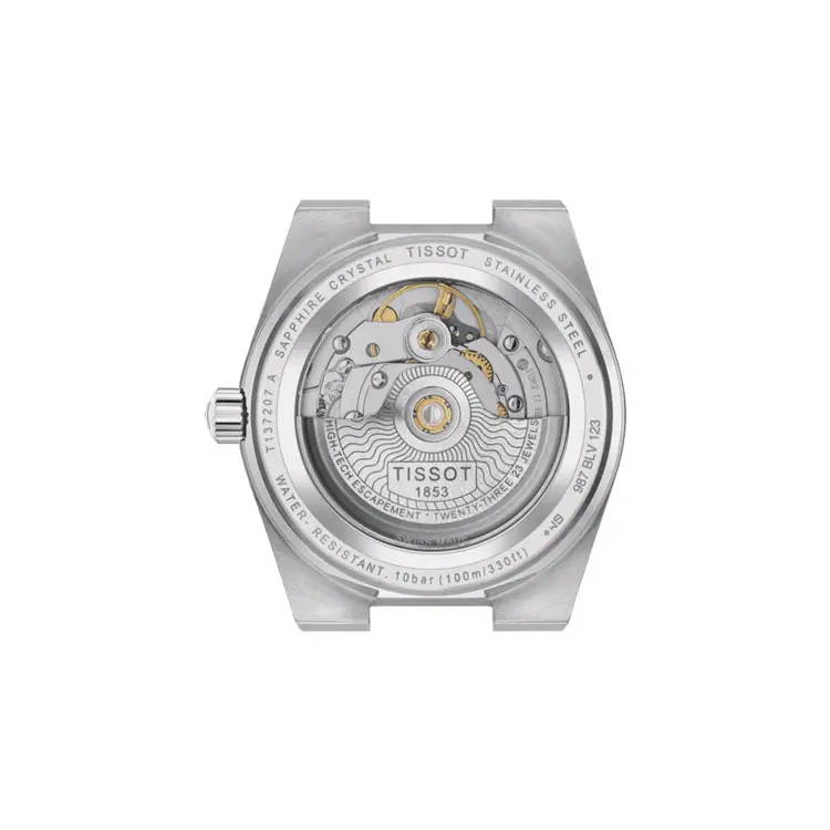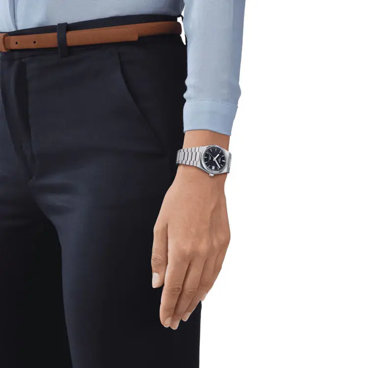 具备 100 米防水性能 (10 ATM),搭配 一体式不锈钢表链与折叠扣,兼顾耐用性与优雅气质。Tissot PRX Powermatic 80 35mm 是追求 瑞士制表工艺、永恒设计与现代性能 人士的理想之选。