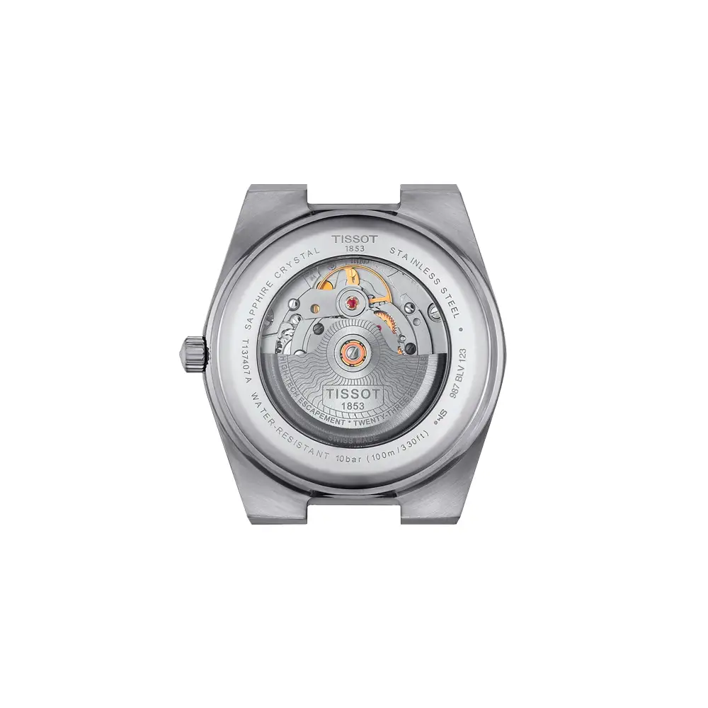本款手表 防水等级达 10 ATM(100 米),不仅适合 日常佩戴,也适合 游泳与休闲活动。搭配 银色不锈钢表链 和 折叠式表扣,佩戴舒适,完美体现运动与优雅的融合风格。Tissot PRX Powermatic 80 是追求 可靠性、风格与多功能性 的理想之选。
