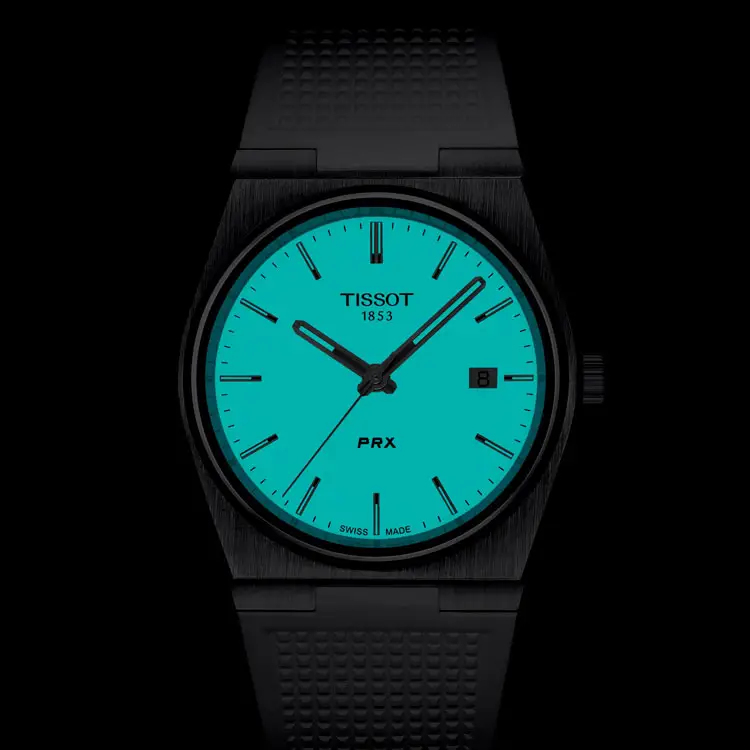 Tissot PRX T137.410.17.011.00 将复古风格与现代极简主义巧妙融合。腕表采用白色太阳纹表盘、纤薄的 40 毫米不锈钢表壳,搭配一体式白色橡胶表带,展现运动与优雅兼具的风格。Super-LumiNova®夜光指针与时标确保在各种光线下清晰易读。