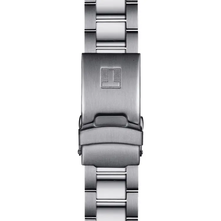 银色不锈钢表链配折叠扣 佩戴舒适稳固。凭借 30 ATM(300 米)防水性能 和 旋入式表冠,该腕表能够应对严苛的潜水环境。