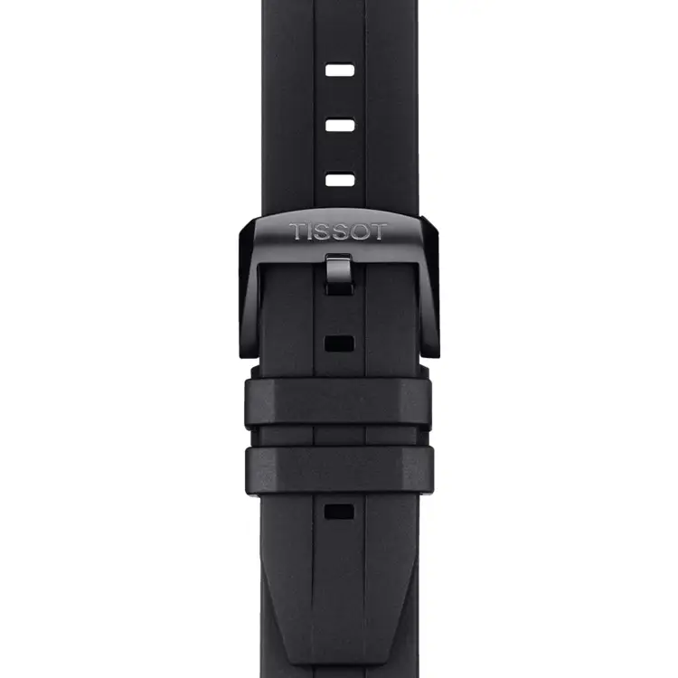 腕表配备 黑色橡胶表带,带折叠扣与潜水延展功能。Tissot Seastar 1000 Chronograph 是追求 专业性能、瑞士精准与大胆设计的理想之选。