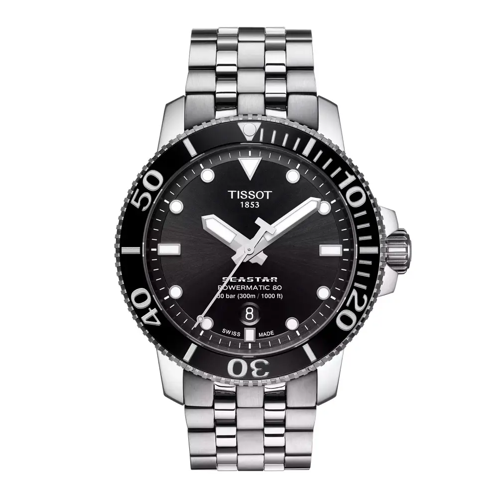 不锈钢表链配折叠扣与安全锁,兼顾舒适与稳固。具备 300 米(30 巴)防水性能 的 天梭 Seastar 1000 Powermatic 80 T120.407.11.051.00 是追求 可靠、时尚与高性能 男士的理想之选,完美适用于潜水与日常佩戴。