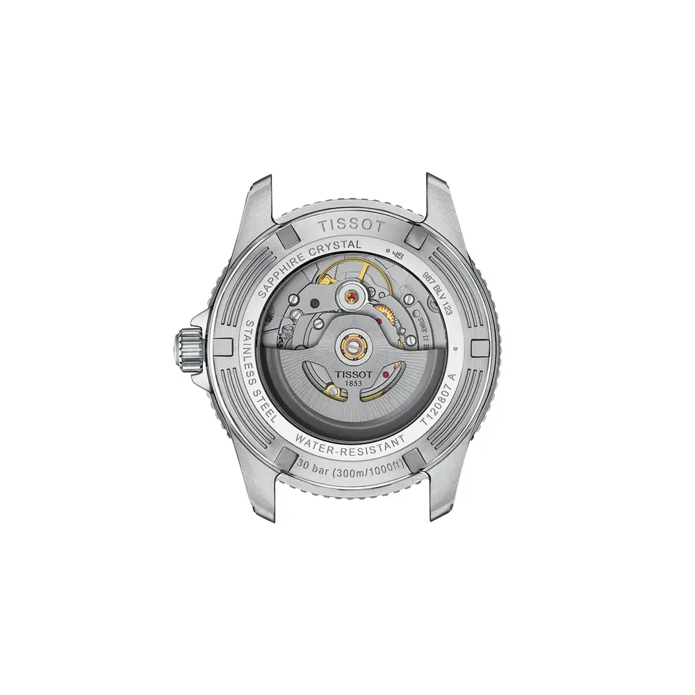 腕表搭载瑞士自动 Powermatic 80 机芯,提供长达 80 小时动力储备,确保稳定可靠的运行。单向旋转潜水表圈、旋入式表冠与底盖 以及 防眩蓝宝石水晶玻璃 共同保障了卓越的耐用性。