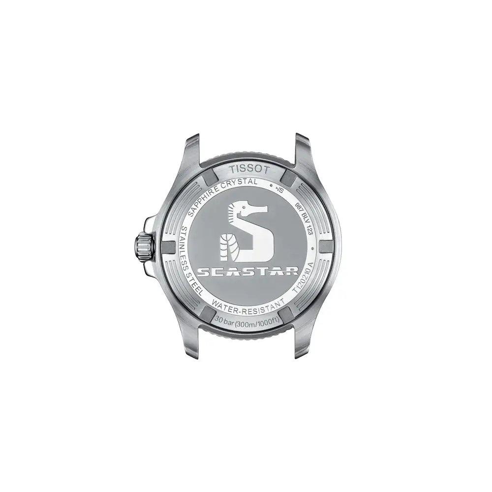 Tissot Seastar 1000 36 mm T120.210.110.5100 在紧凑尺寸中平衡了 运动潜水性能与日常佩戴性。黑色表盘搭配醒目刻度与夜光指针,无论在水下或弱光环境中均具备出色可读性。