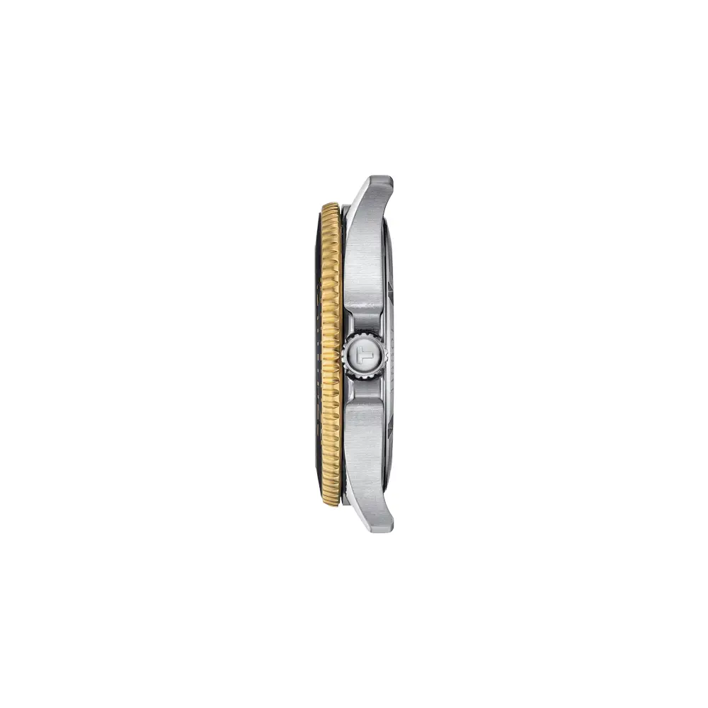 腕表内部搭载精准可靠的瑞士 石英机芯,维护需求低。双色精钢表链配备 安全折叠扣,佩戴舒适稳固。Tissot Seastar 1000 Quartz 是追求 耐用性、先进技术与瑞士品质运动腕表 的理想之选。