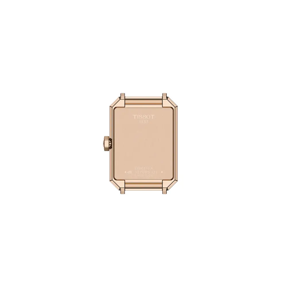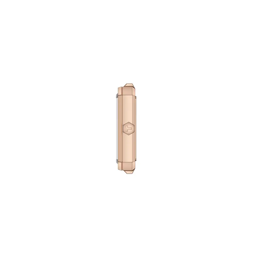 Tissot SRV T160.110.36.033.00 女士腕表融合了瑞士品质、优雅设计以及 Art Deco 风格灵感。腕表采用精致的矩形表壳和 银色表盘搭配罗马数字刻度,展现经典而优雅的外观。玫瑰金 PVD 表壳增添了奢华气质,适合日常佩戴和正式场合。