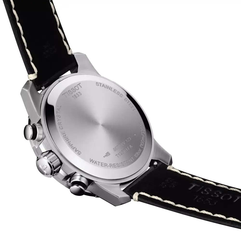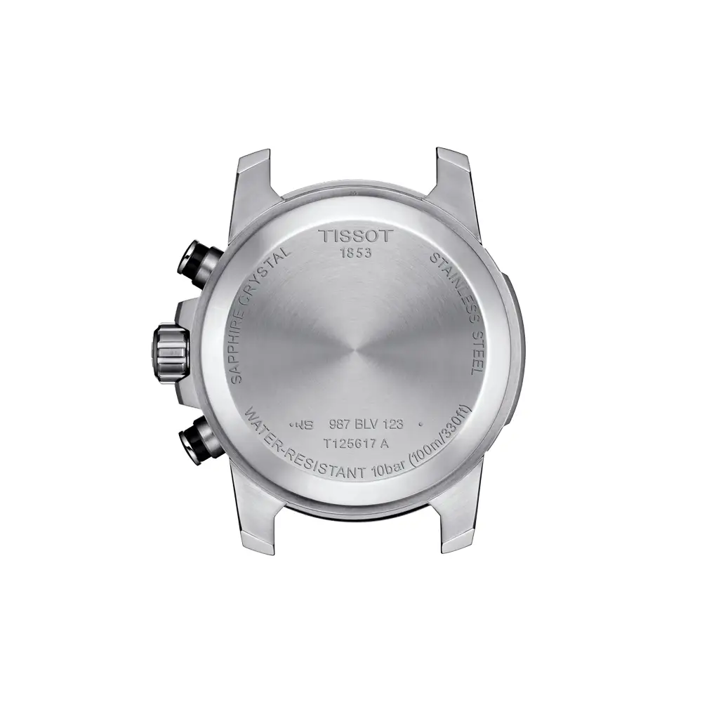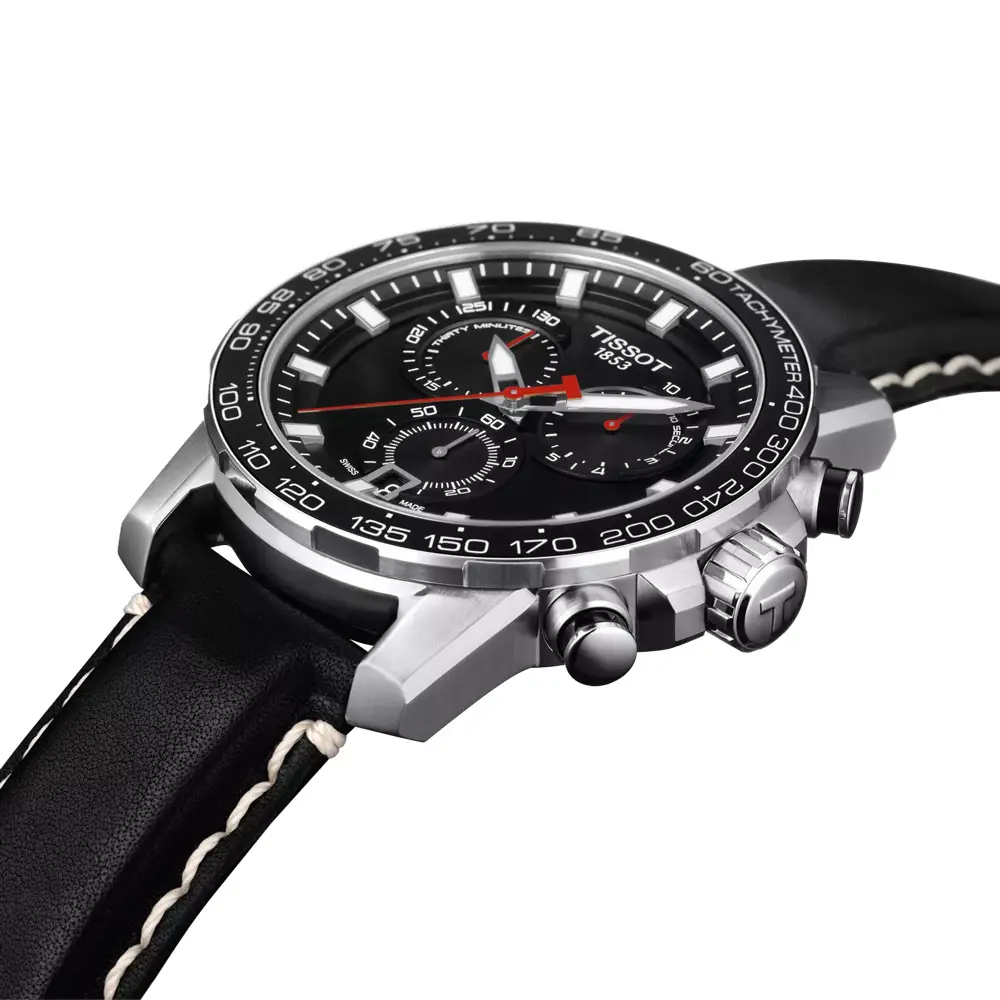 Tissot Supersport Chronograph T125.617.16.051.00 将 现代运动设计、坚固结构与瑞士精准度 融为一体。其 45.5 毫米 316L 不锈钢表壳 搭配深邃的 黑色表盘,呈现强烈的科技感与运动风格。黑色皮革表带 提升舒适度,同时保持运动-优雅的整体气质。
