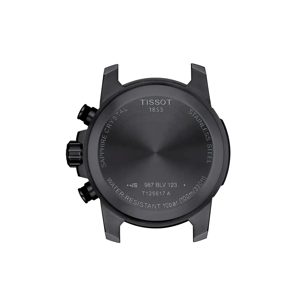 这款 天梭 Supersport Chrono 计时腕表 以 现代设计与阳刚优雅 脱颖而出。45.5 毫米不锈钢表壳搭配黑色 PVD 涂层,展现强劲气场;黑色表盘配以对比色指针与刻度,确保清晰易读。