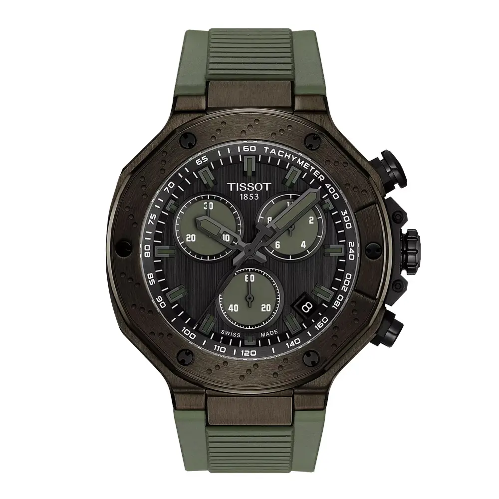 凭借 100 米(10 ATM)防水性能,腕表可轻松应对雨水、淋浴或游泳。112 克的重量与坚固结构让腕表佩戴时稳重且可靠。T-Race 是一款将 运动设计、实用功能与坚固耐久性 集于一身的充满动感的腕表。