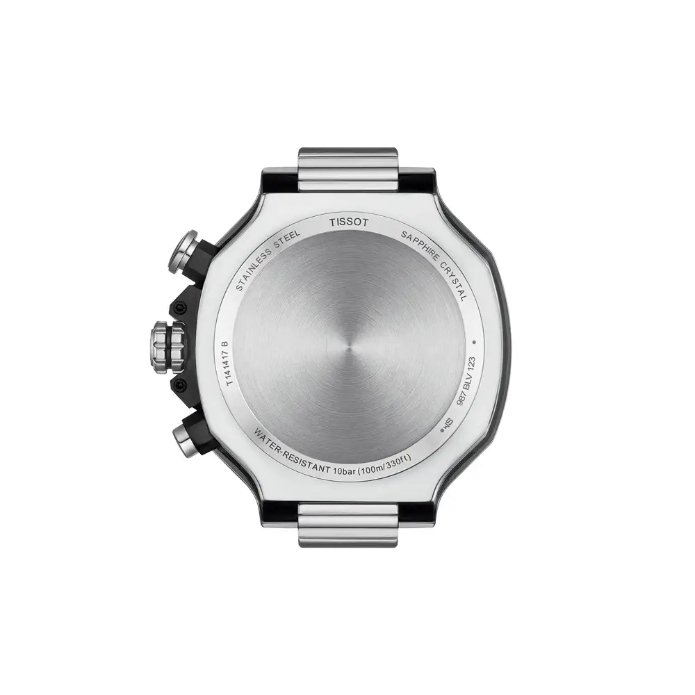 Tissot T-Race Chronograph T141.417.11.031.00 是一款醒目的 男士运动计时腕表,灵感来自赛车运动与 Tissot 在 MotoGP 中的合作。银色表盘搭配三枚小表盘、对比指针与夜光刻度,在弱光或高速场景下均具备良好可读性。 详细的产品描述